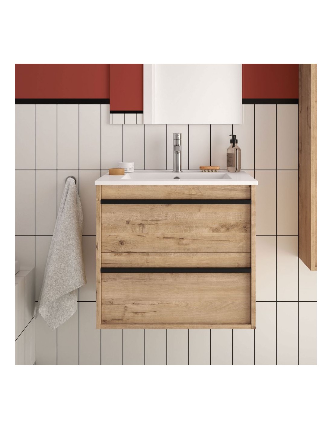 Mobile bagno sospeso rovere ostippo 2 cassetti 60x45x54h Ador60
