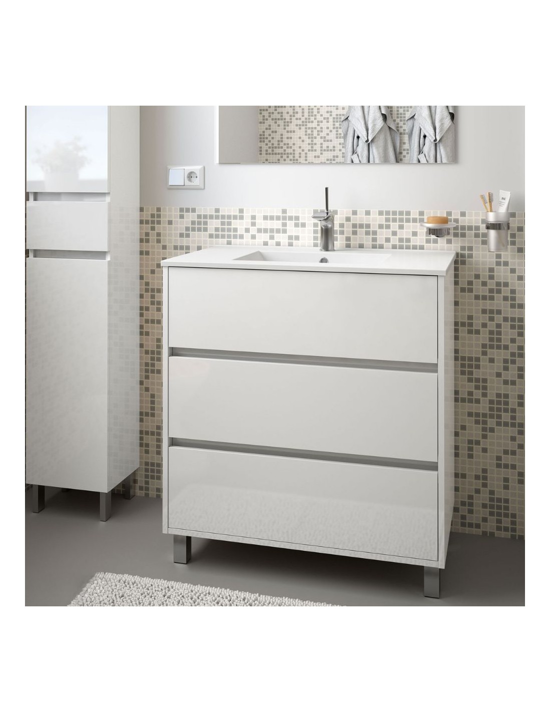 Mobile bagno bianco laccato lucido 3 cassetti 81x45x86 h Elmas80