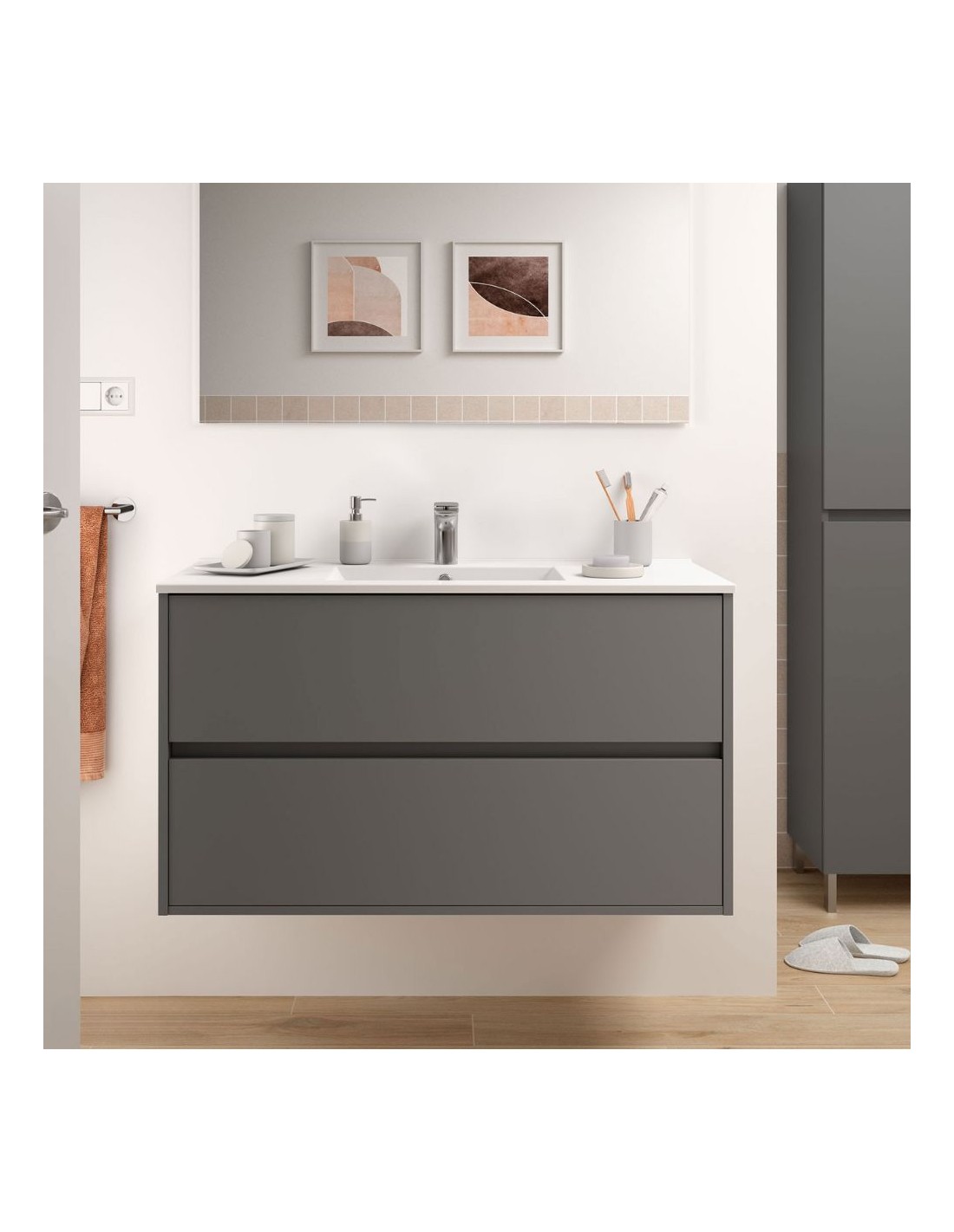 Mobile bagno sospeso grigio opaco 2 cassetti 100x45x56h Claros100
