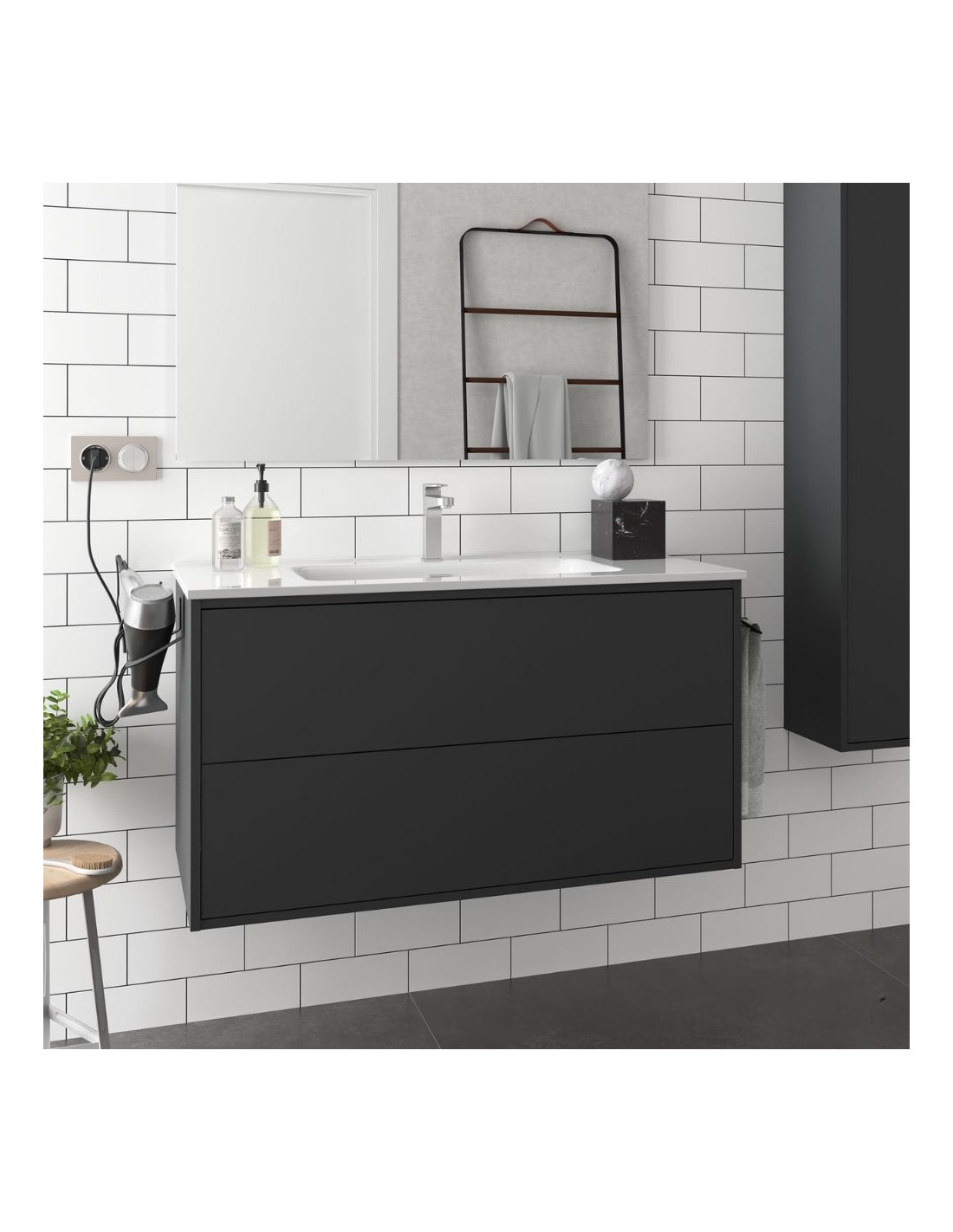 Mobile bagno sospeso nero opaco 2 cassetti 100x45x54h Mango100