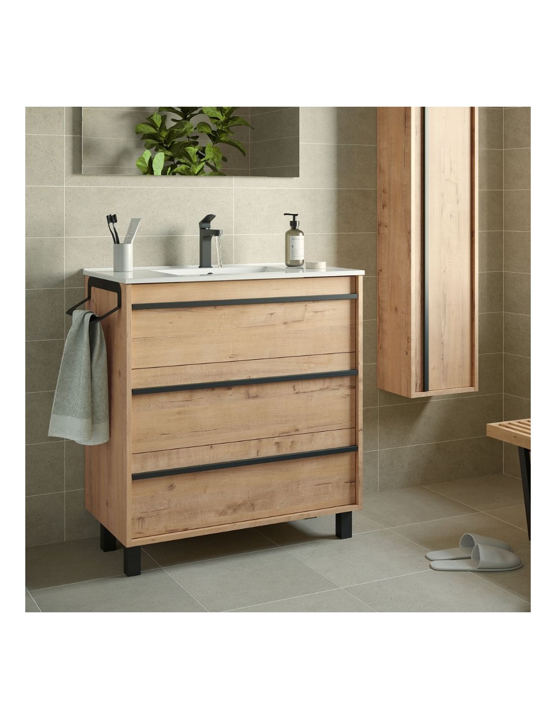Mobile bagno rovere ostippo 3 cassetti 80x45x86h Geco80