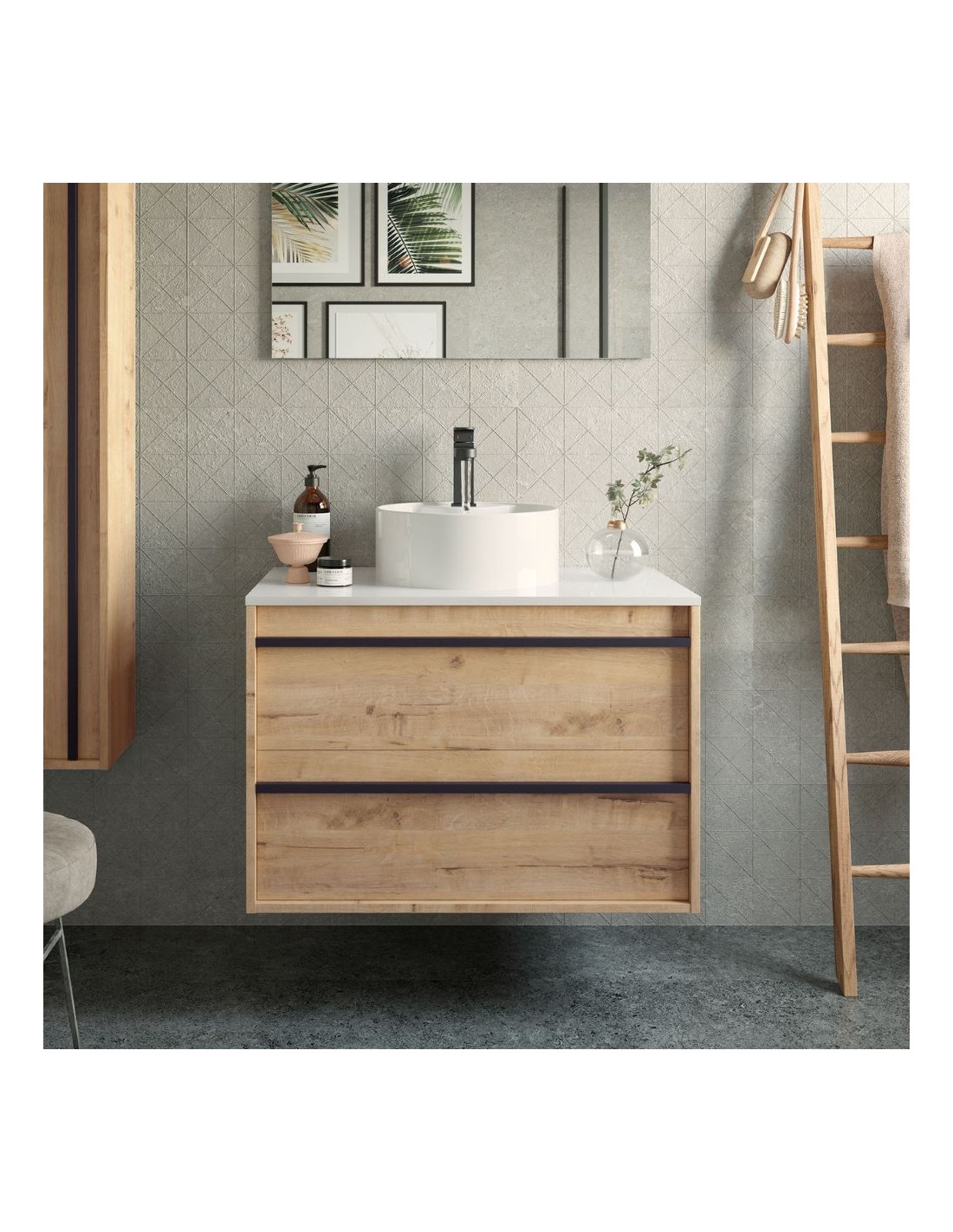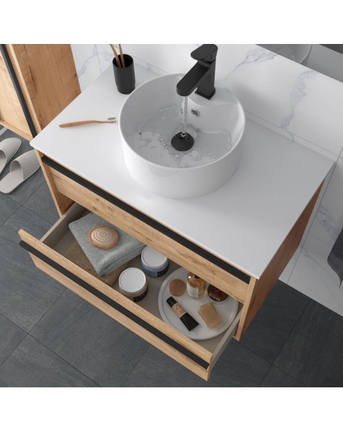 Mobile bagno sospeso rovere ostippo 2 cassetti con lavabo appoggio 100x45x54h Nuar100