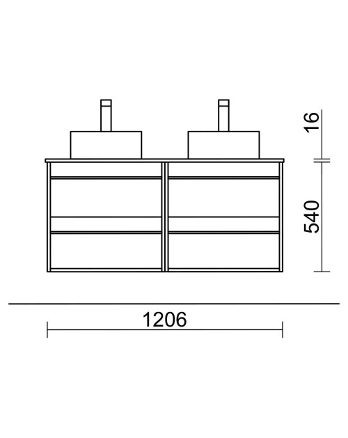 Il mobile bagno sospeso Nuar120 caratterizza per il doppio lavabo d'appoggio. E' dotato di 4 cassetti con chiusura ammortizzata e lavabo in porcellana bianca. Prodotto con materiali di alta qualità che assicurano resistenza all'usura per molto tempo.