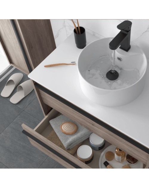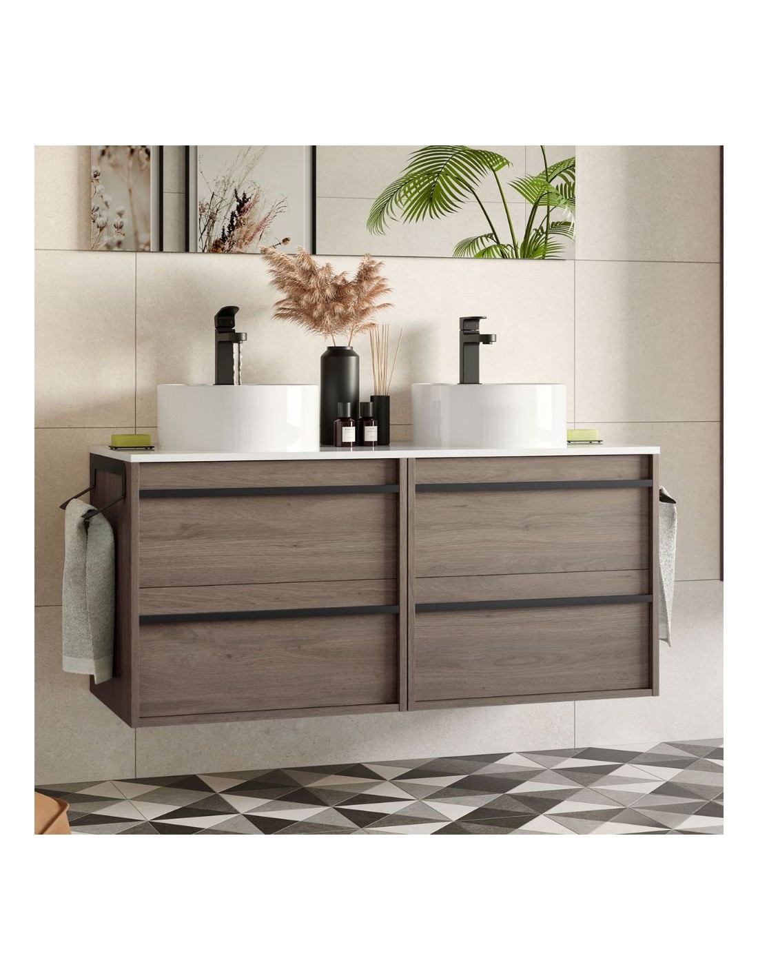 Mobile bagno sospeso rovere eternity 4 cassetti con doppio lavabo appoggio 120x45x54h Nuar120