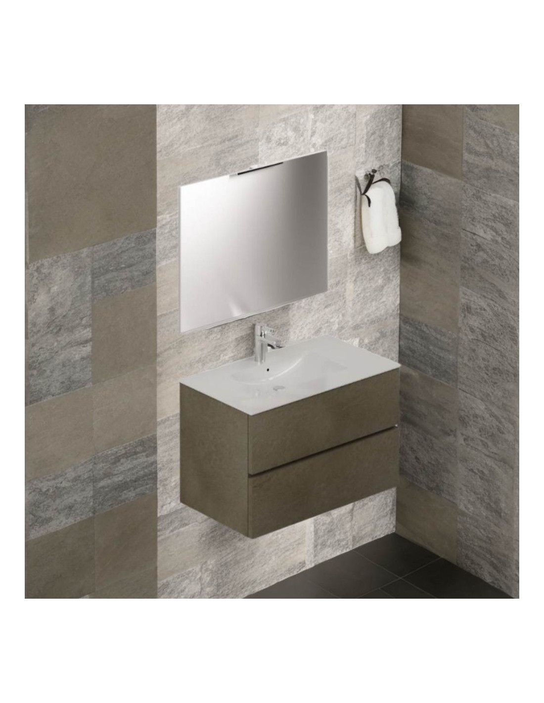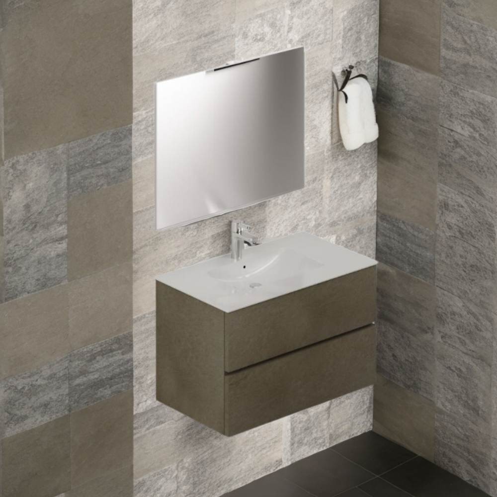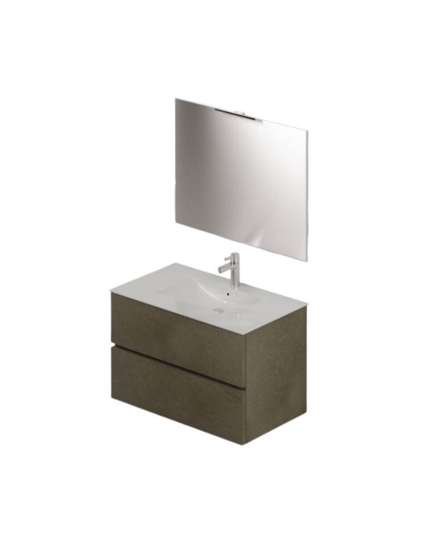 Mobile bagno sospeso bianco frassinato 2 cassetti con lavabo e specchio COMP60BF 61x46x54h