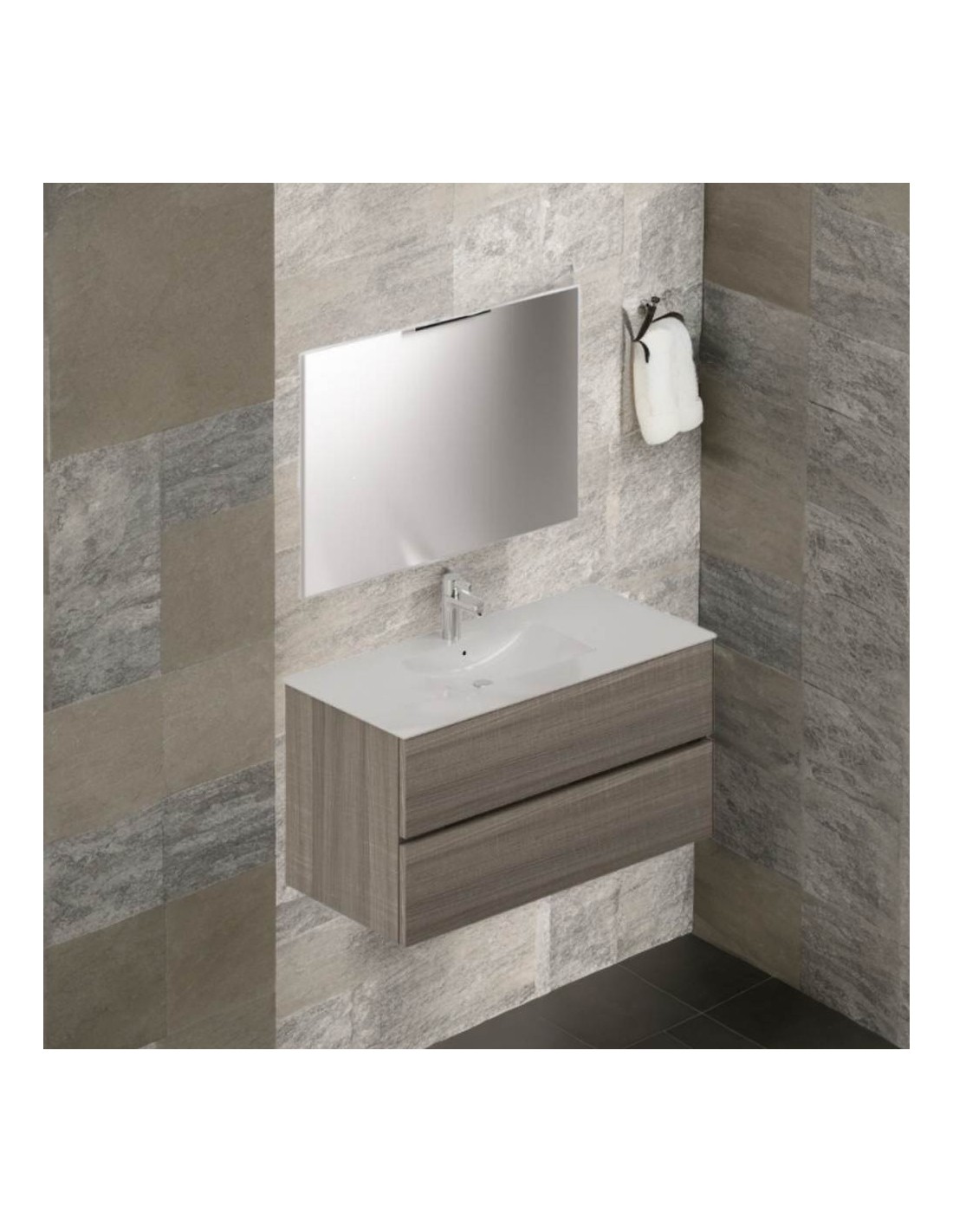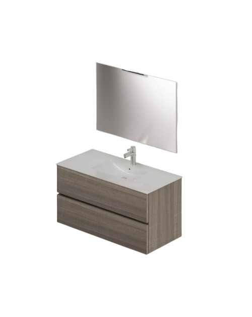 Mobile bagno sospeso olmo 2 cassetti con lavabo e specchio COMP100OL 101x46x54h