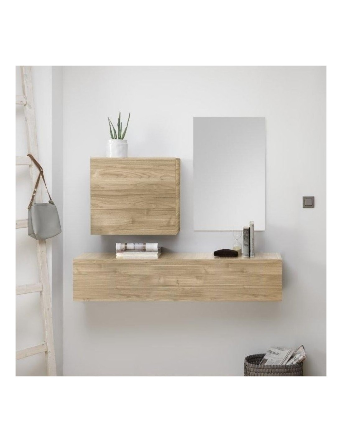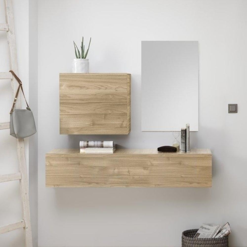 Mobile ingresso rovere bianco con scarpiera e specchio Mosso MO6