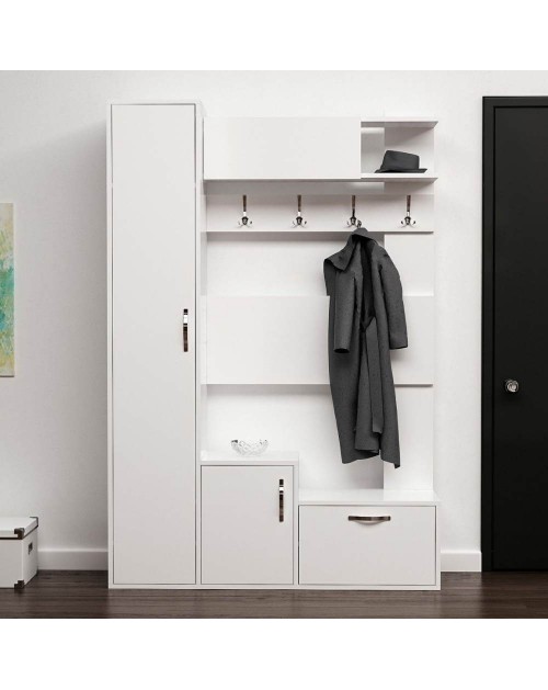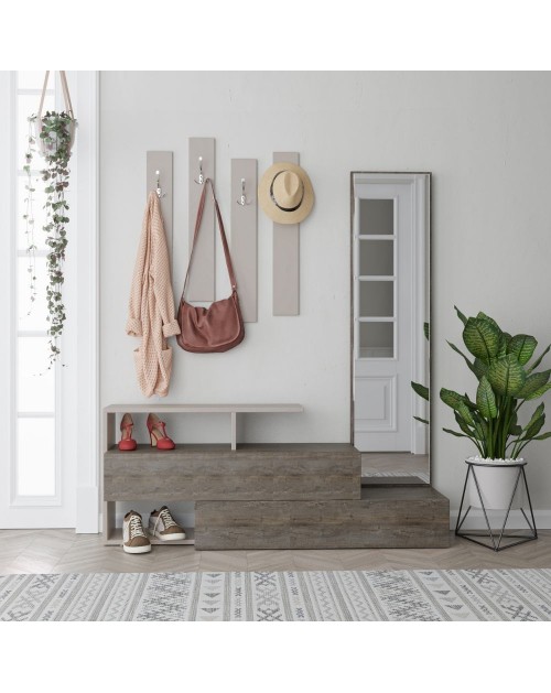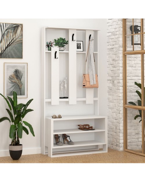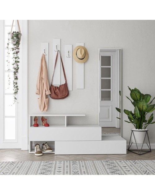 Rinnova il tuo ingresso grazie al funzionale appendiabiti Game. Dotato di 3 ganci multipli appendiabiti e 4 vani a giorno. Design moderno e minimale che si adatta facilmente alla tua casa. I numerosi vani ti garantiranno un pratico appoggio per i tuoi oggetti ed eventuali complementi d'arredo.