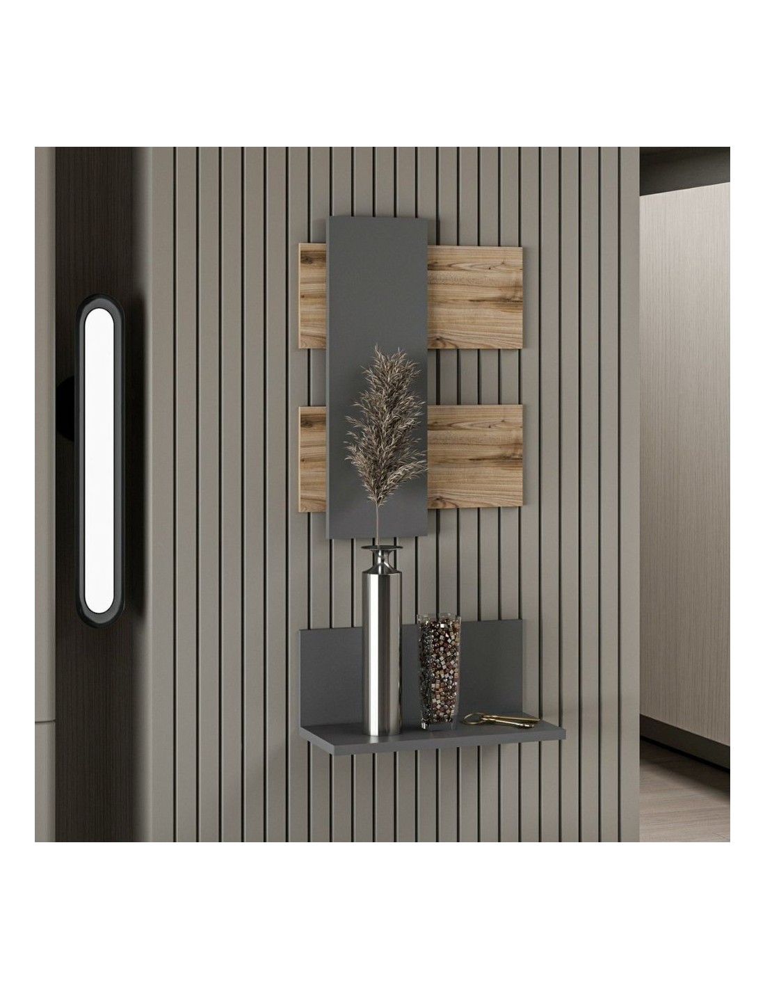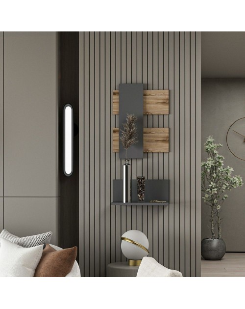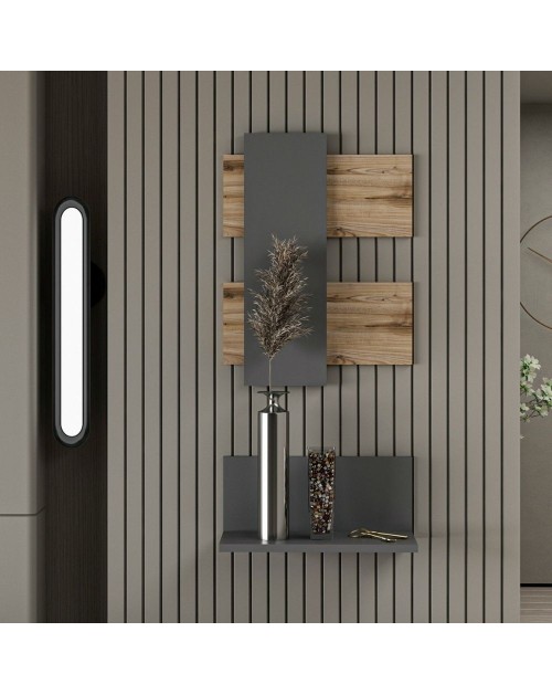 Impreziosire una parete oppure l'ingresso è facile grazie alla composizione Belita. Raffinata composizione di pannelli e mensole che puoi usare per l'ingresso di casa, del tuo studio o su una parete del tuo living.