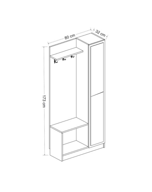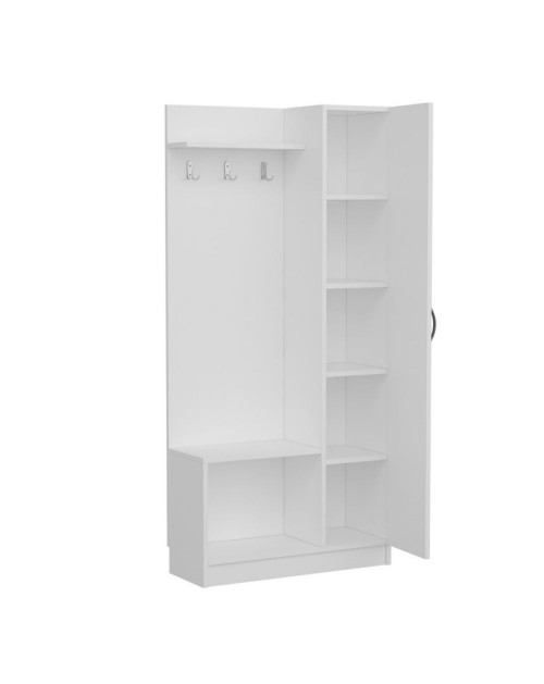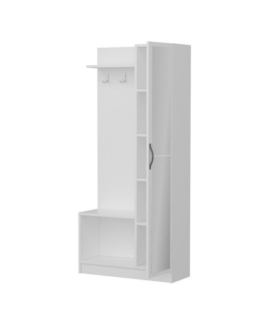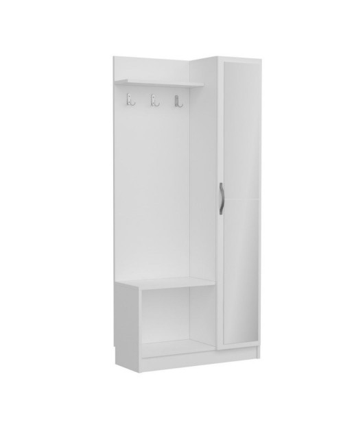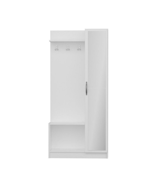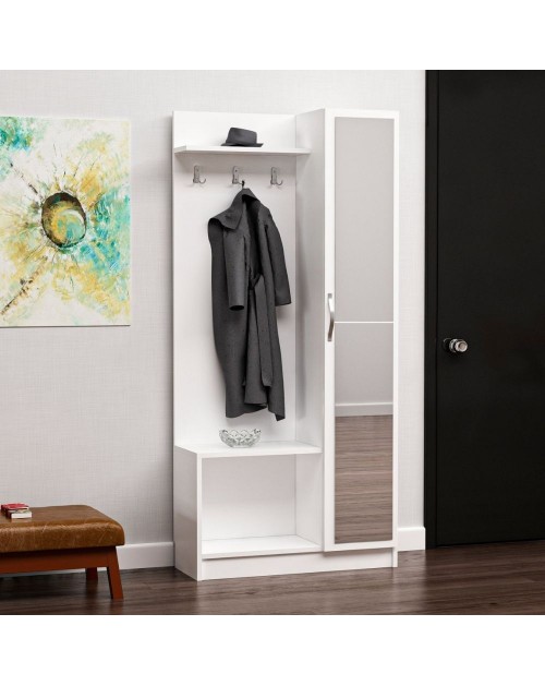Questo prodotto è la soluzione perfetta per avere l'ingresso ordinato. E' dotato di appendiabiti con ganci multipli, una mensola cappelliera, una scarpiera a giorno con piano d'appoggio e una colonna con 4 ripiani chiusa da una funzionale anta a specchio. Puoi posizionarlo in casa oppure nel tuo studio.