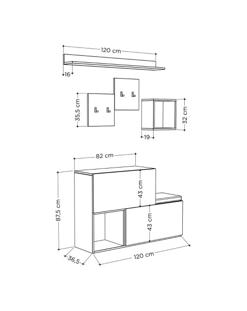Misure ingombro massimo 120x36,5x87,5 h per la parte inferiore.