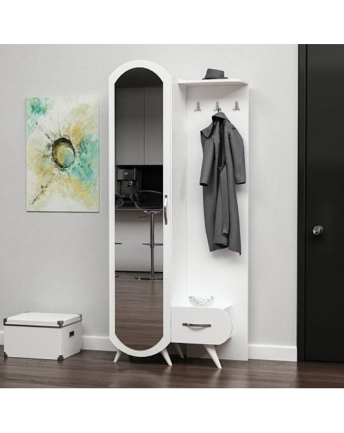 Mobile ingresso con specchi anta e cassetto rovere bianco Lion