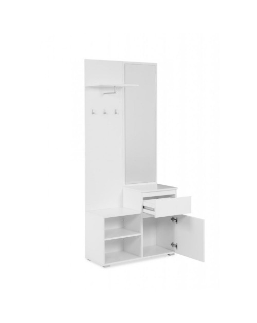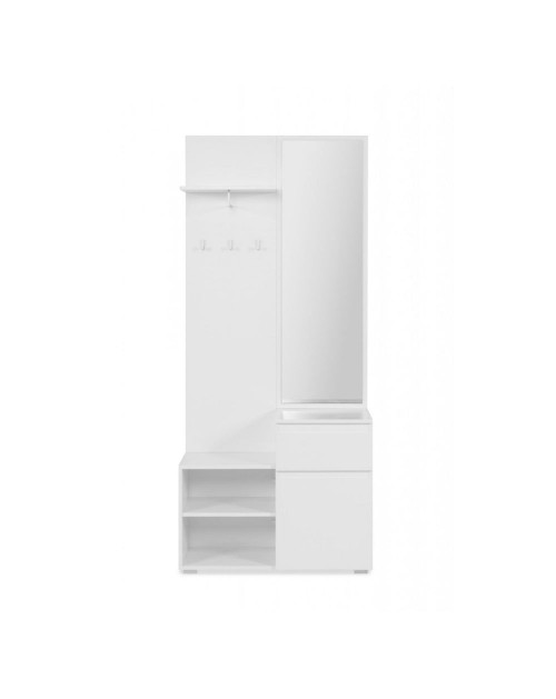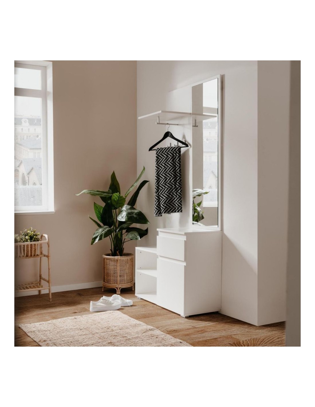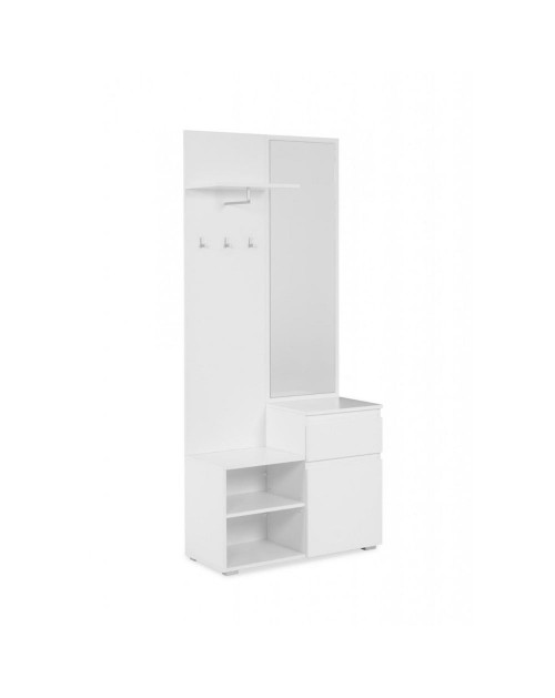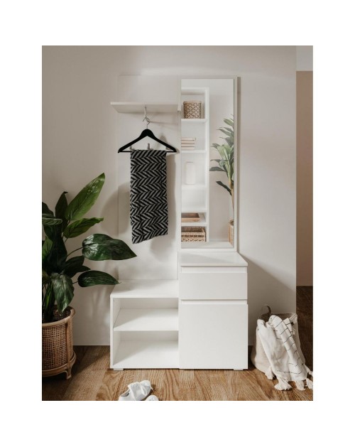 Il mobile ingresso bianco con specchio Image 41B è la soluzione perfetta per avere l'ingresso ordinato. E' dotato di appendiabiti, una mensola cappelliera, un'anta, vano a giorno con ripiano, un cassetto e specchio. Puoi posizionarlo in casa oppure nel tuo studio, il colore bianco è facilmente abbinabile ad ogni ambiente.