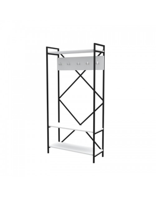 Mobile ingresso appendiabiti struttura in metallo e ripiani bianco Navis