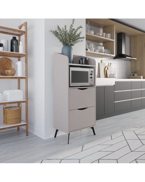 Mobile multiuso con cassetti tortora e ripiano effetto carrara Gorki