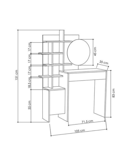 E’ dotata di un cassetto, specchio rotondo, base con anta e una funzionale struttura in rovere dove riporre tutti i tuoi oggetti.