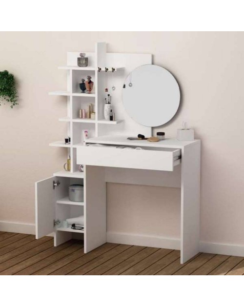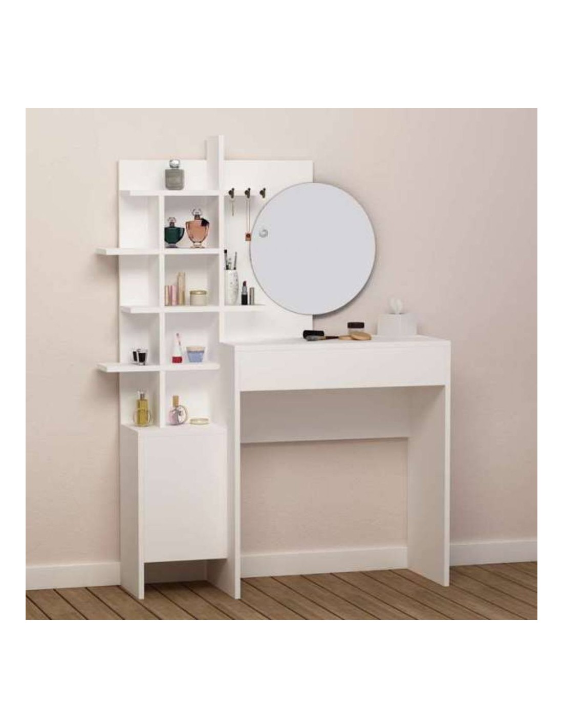 La toilette trucco bianca con vani a giorno Mup, ha tutto ciò che serve per il tuo angolo trucco.