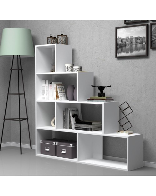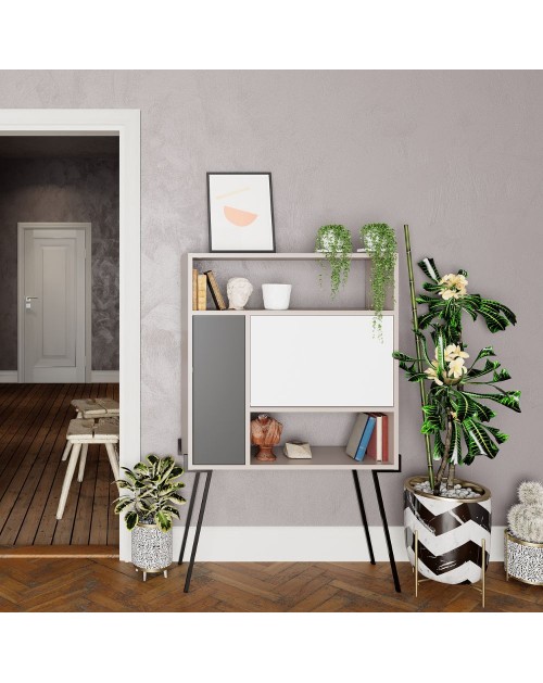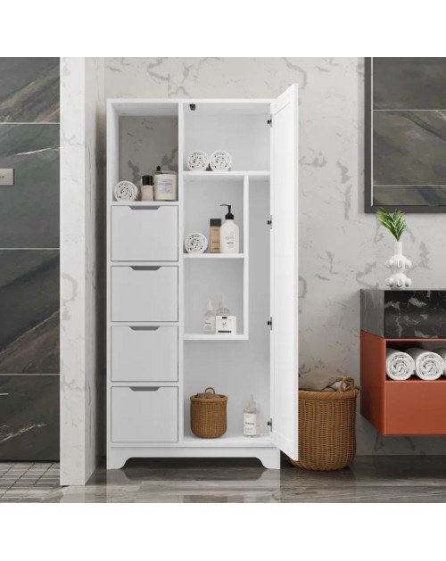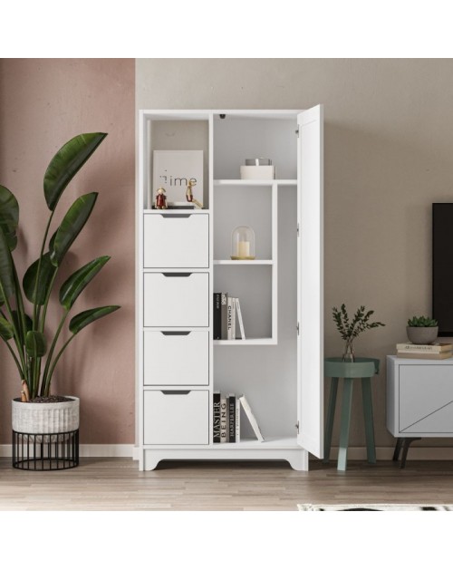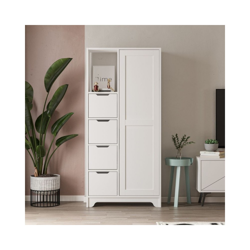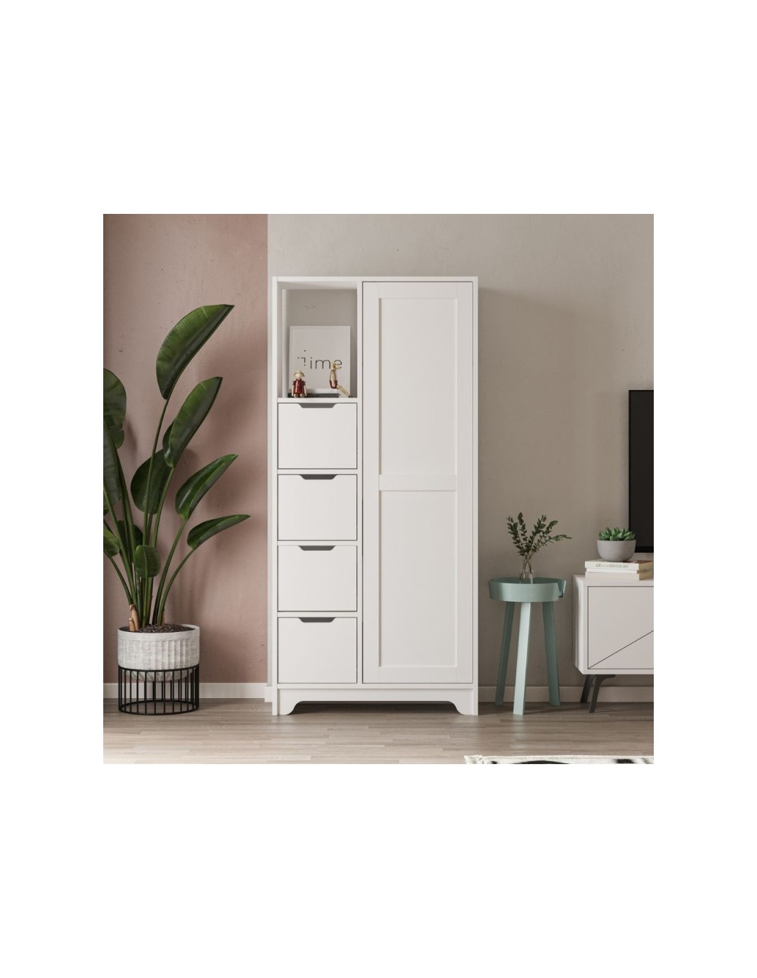 Armadio multiuso con 4 cassetti vano a giorno e anta Yada Midi colore bianco 77x29,6x164,5