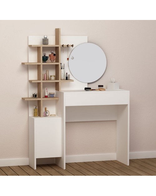 E’ dotato di 4 cassetti, un vano a giorno e dietro l’anta si nascondono ben 4 scomparti di diverse misure.