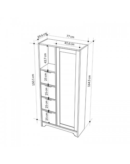 Questo armadio compatto è progettato per adattarsi perfettamente alle aree più piccole, ideale per camera da letto, bagno, ingresso, corridoio e ufficio.