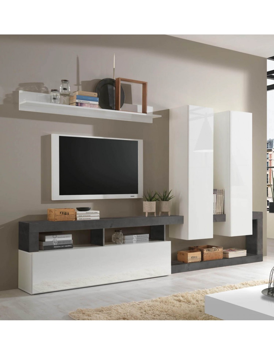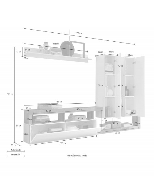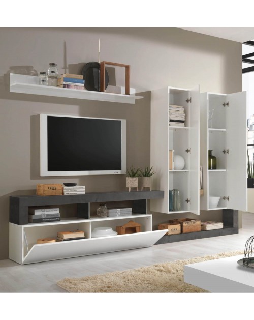 Il soggiorno Mogol è caratterizzato dal moderno design italiano. Una riuscita combinazione di colori con elementi bianchi, frontale in laccato lucido combinato con una cornice colore Ossido.