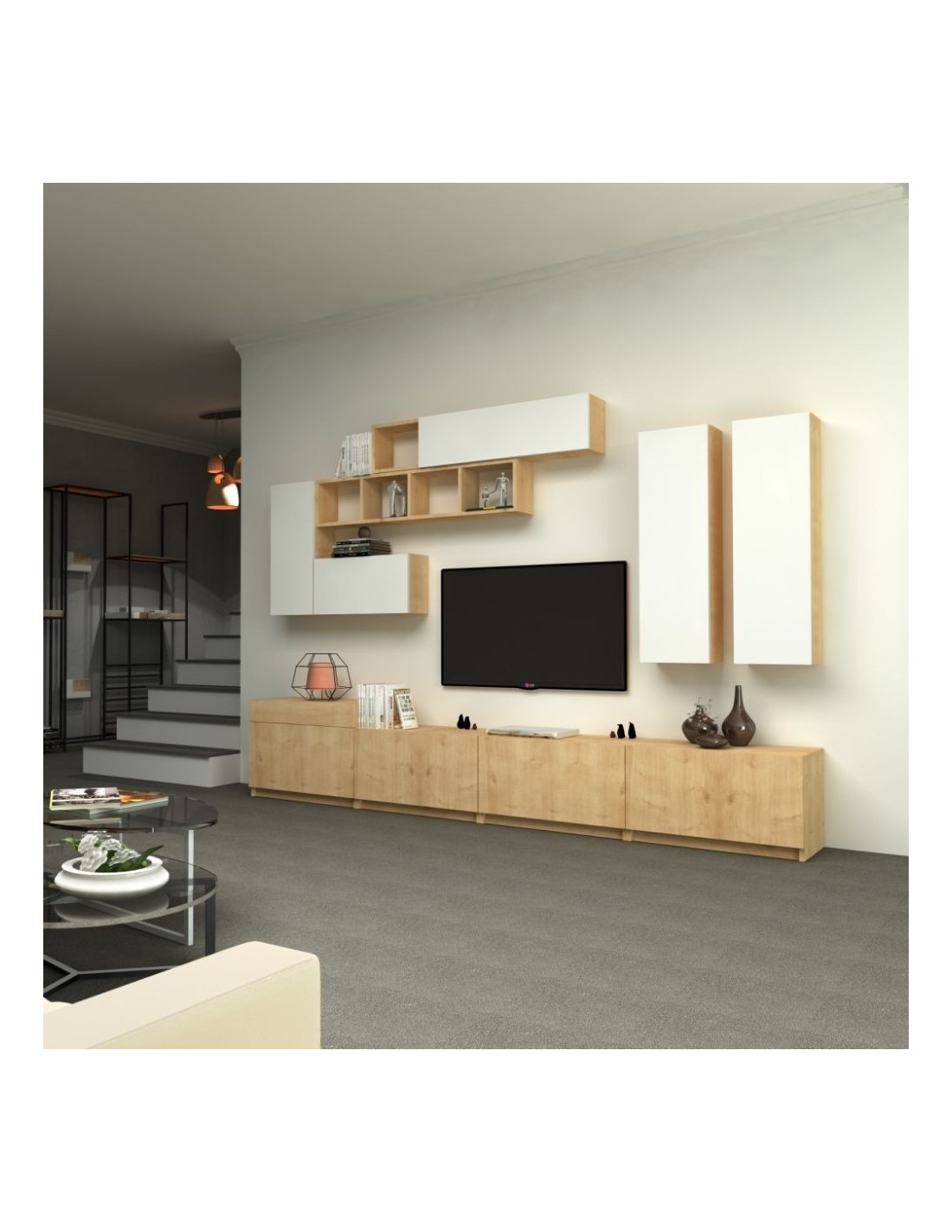 Parete attrezzata Labella da 270 cm. bianco rovere.