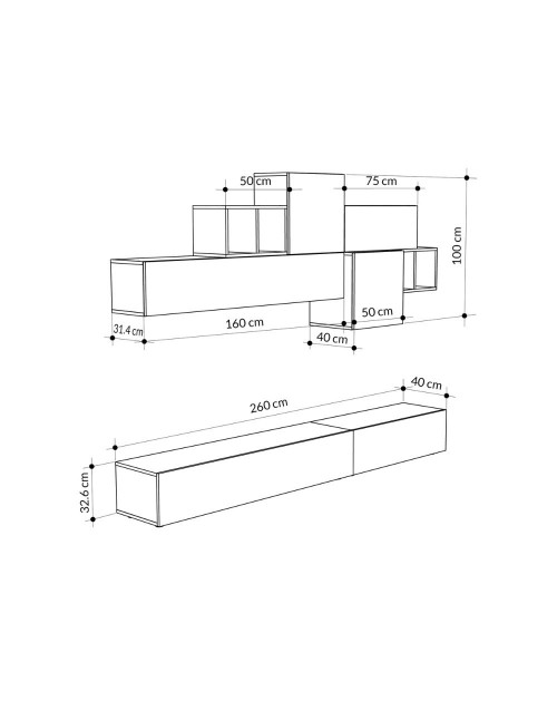Misura base 260x40x33 H cm. (dettagli misure nella foto).