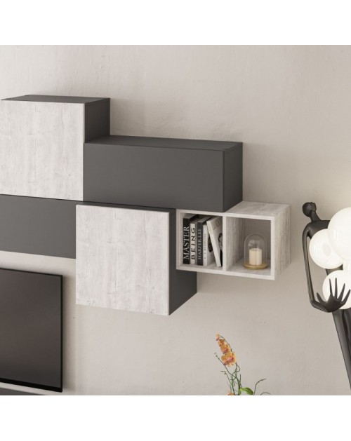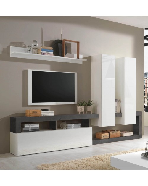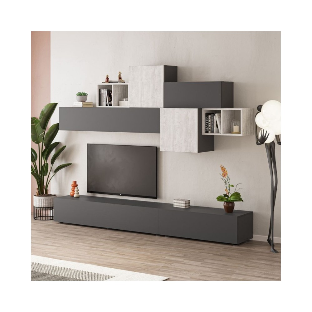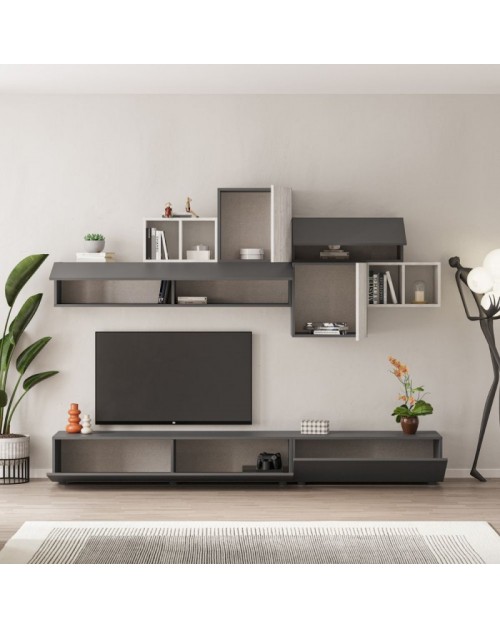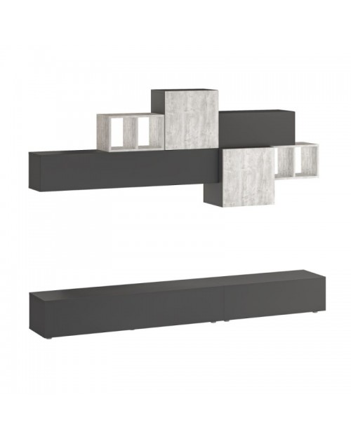 Parete attrezzata 260 cm antracite e bianco vintage Tromen