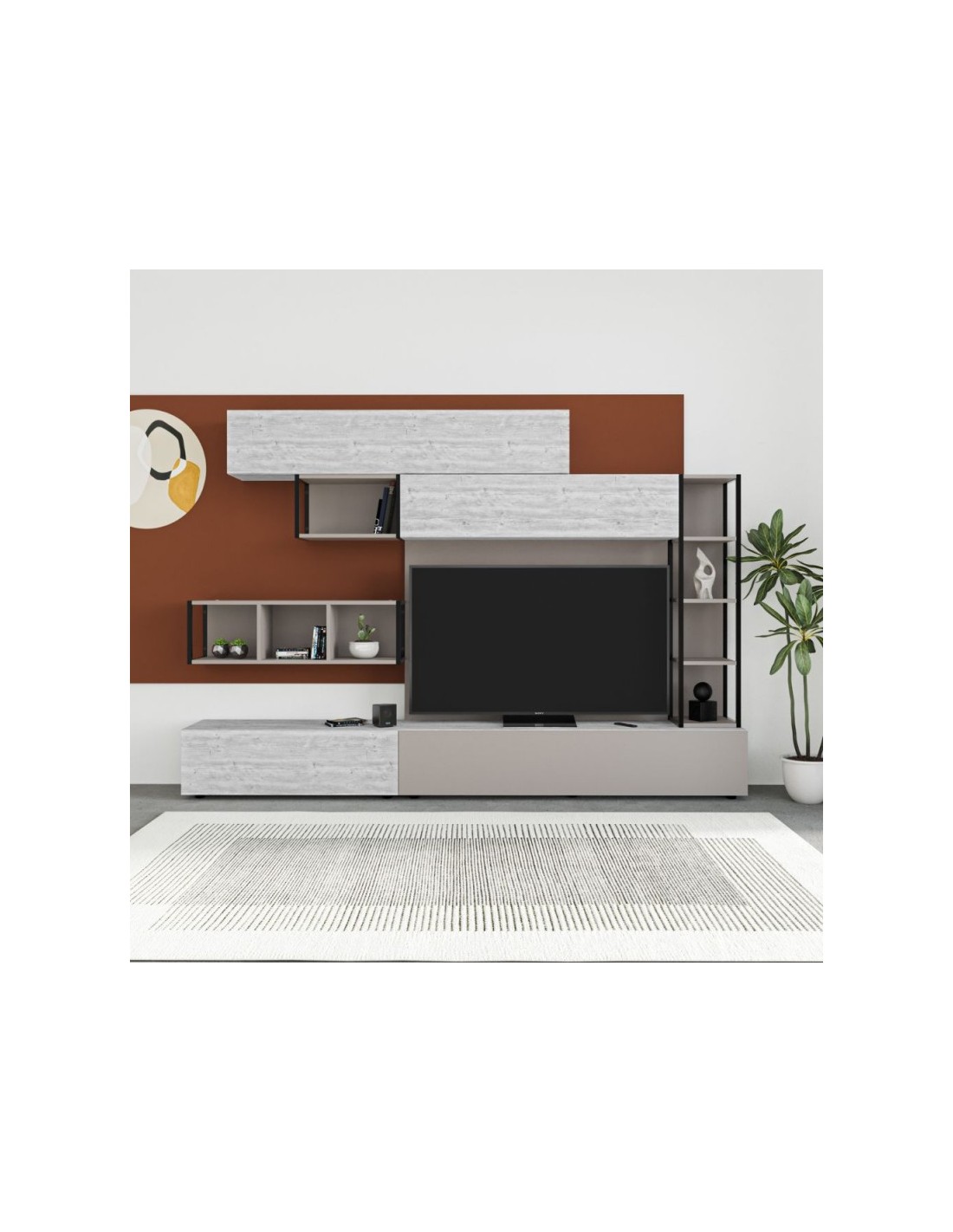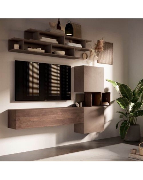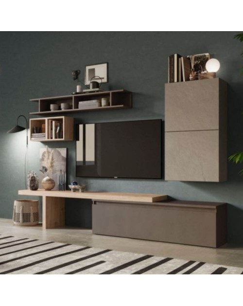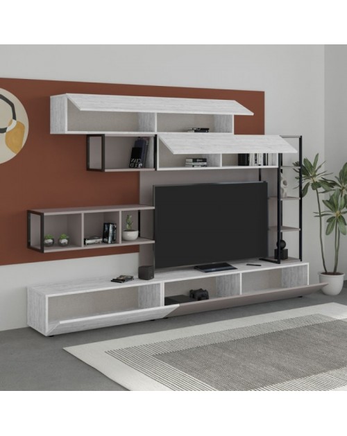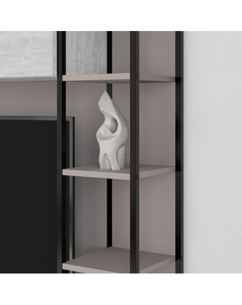 Parete attrezzata Tronador nella finitura tortora e bianco antico è ideale per arredare con modernità il tuo salotto oppure il soggiorno. Dotata sia di ante che vani a giorno. Il contrasto dei colori la rende facile da abbinare con i tuoi ambienti. I capienti contenitori e i numerosi ripiani, ti consentiranno di tenere in ordine tutto ciò che desideri.