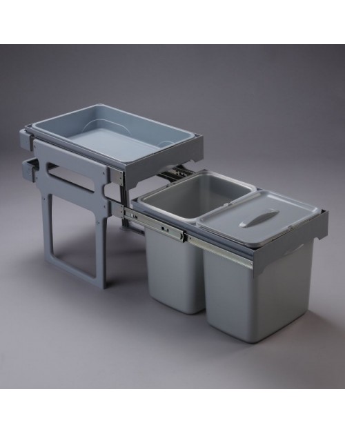 La pattumiera Tank40 con vassoio estraibile in plastica grigio 2x16 litri è una pattumiera da cucina con una capacità totale di 32 litri, suddivisa in due contenitori da 16 litri ciascuno.