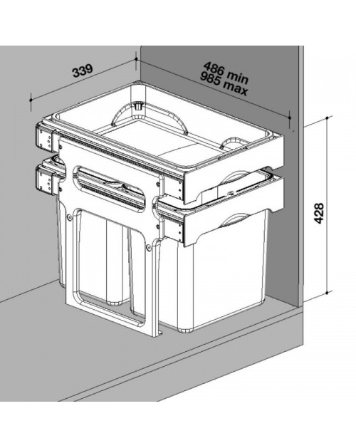 Pattumiera estraibile 2 contenitori e 1 vassoio Tank40 grigio canna di fucile