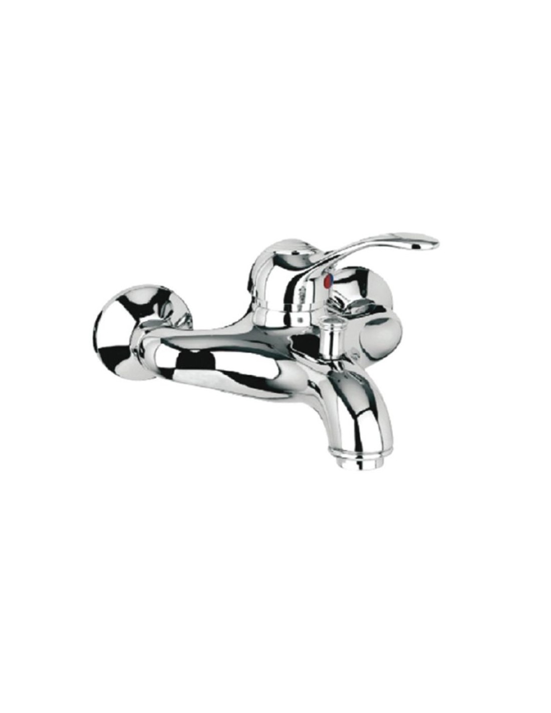 Miscelatore cromato per vasca. Può adattarsi sia a stili classici che moderni.