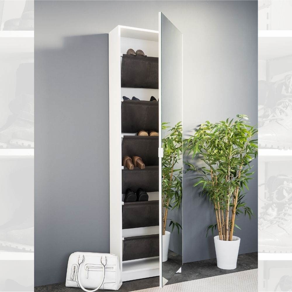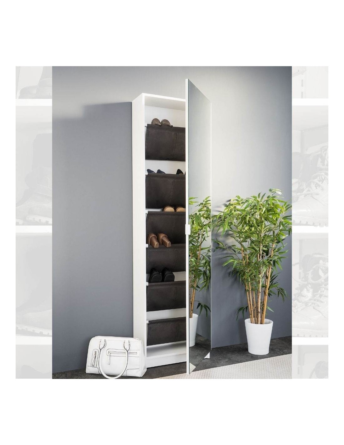Scarpiera pensile bambu' bianca con 3 ante a ribalta