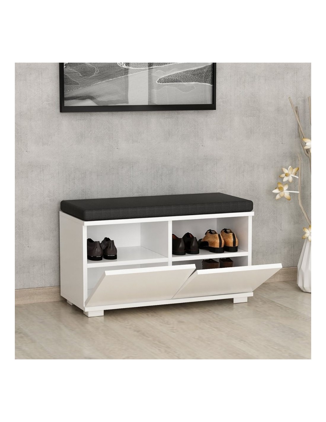 Scarpiera con pouff bianco nero Dragoshoe