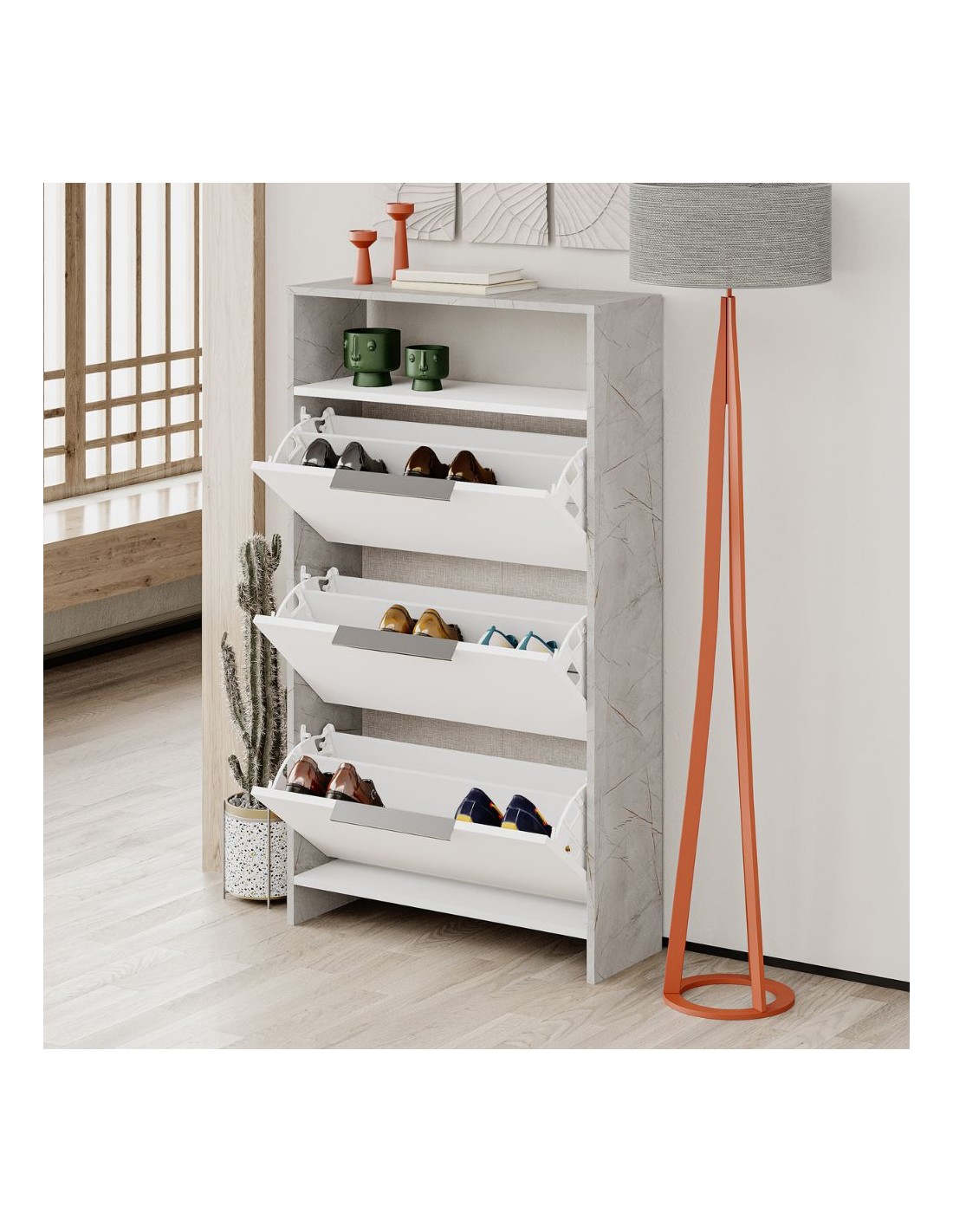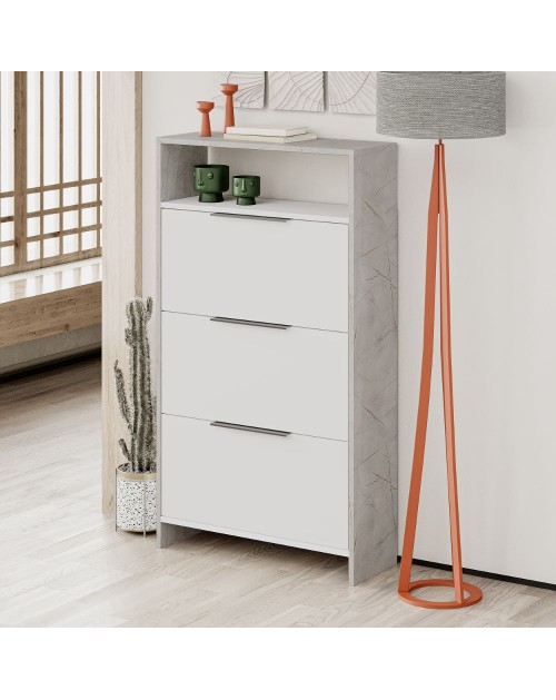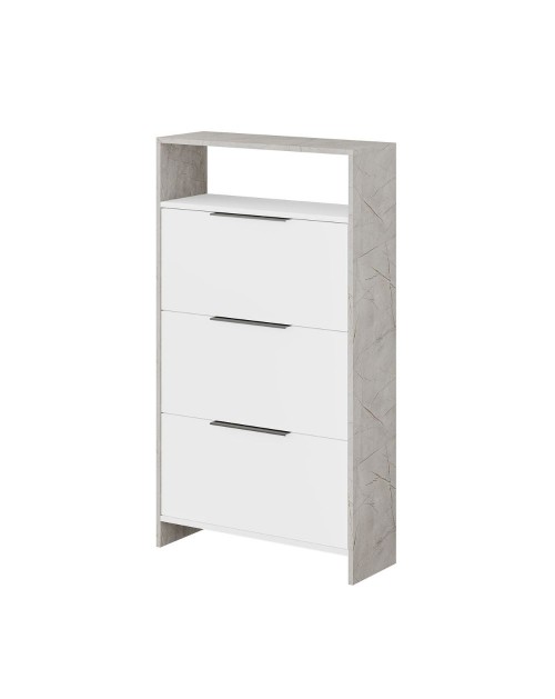 Scarpiera 3 ante a ribalta bianco e struttura effetto marmo grigio Kaju