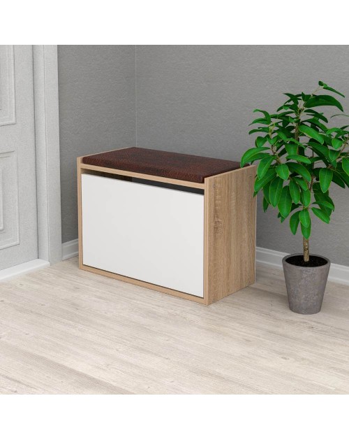 Scarpiera con panca rovere apertura a ribalta anta bianca Susa