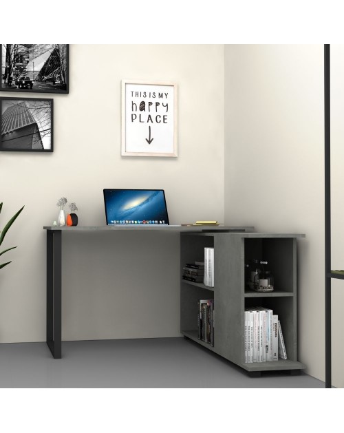 Funzionale scrivania dotata di libreria. Ottima soluzione per arredare il tuo studio, l'ufficio oppure la cameretta. La libreria può essere montata si a destra che sinistra, in tal modo non avrai vincoli nel posizionamento angolare. La struttura robusta garantirà stabilità e l'ampio spazio sia del piano che della libreria ti risulteranno utili per posizionare i tuoi libri.