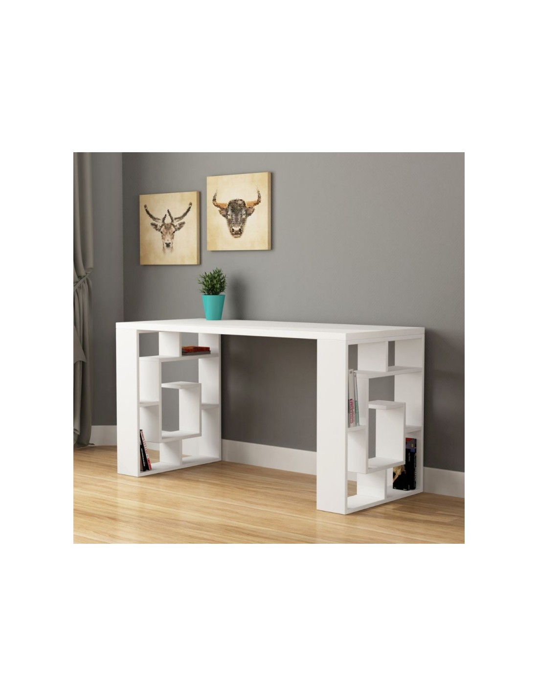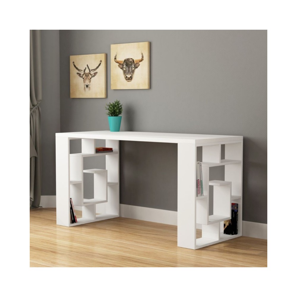 Scrivania bianco con piedi rovere Labirent 140