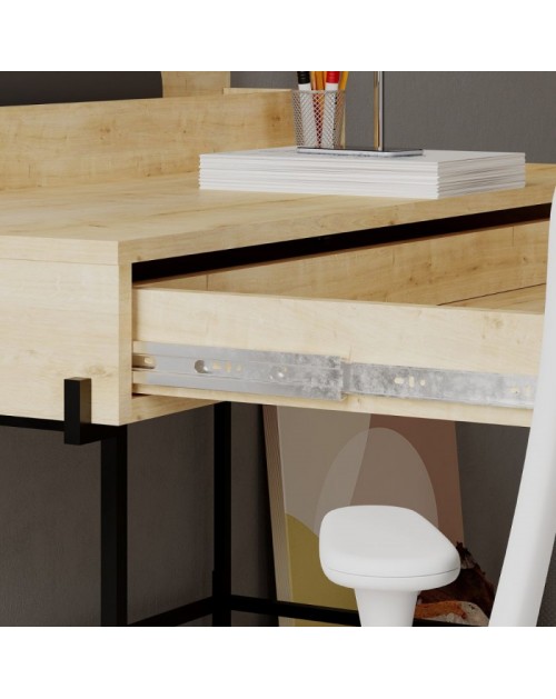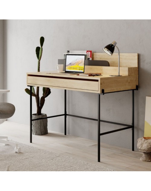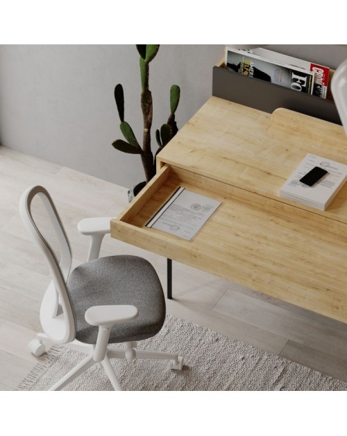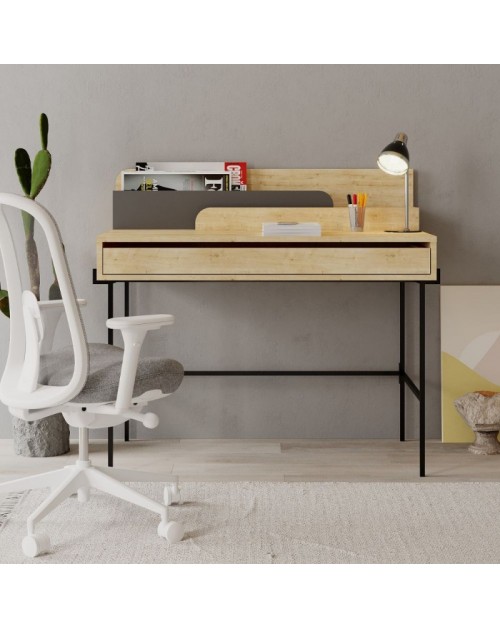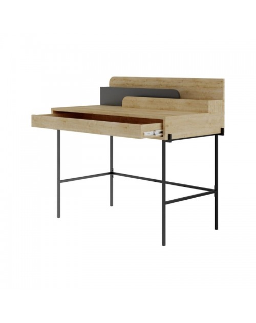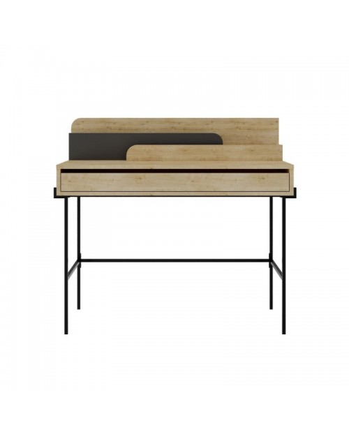 Scrivania rovere con dettagli antracite e gambe nere Leila 110x60x101