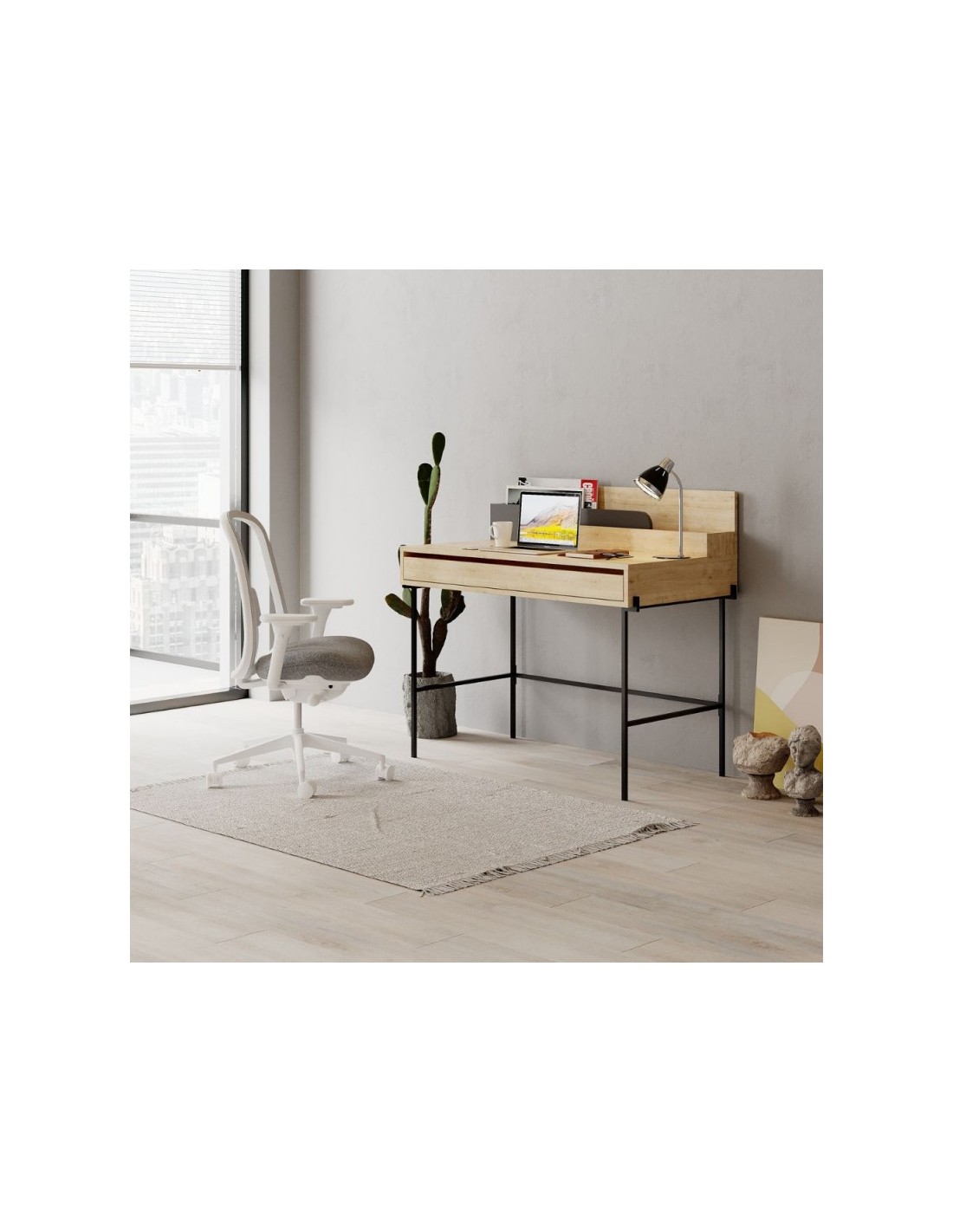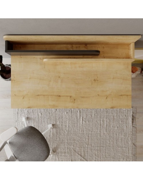 La scrivania Leila è moderna e versatile, perfetta per qualsiasi ambiente, sia domestico che lavorativo. Il piano di lavoro in rovere con dettagli antracite crea un contrasto elegante e raffinato, mentre le gambe in metallo nero conferiscono alla scrivania un tocco di stile industriale.