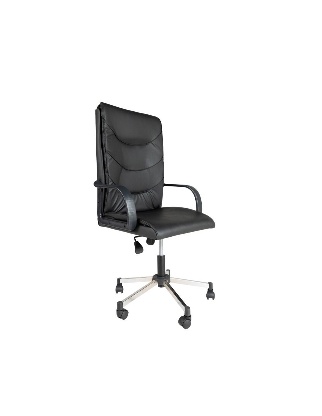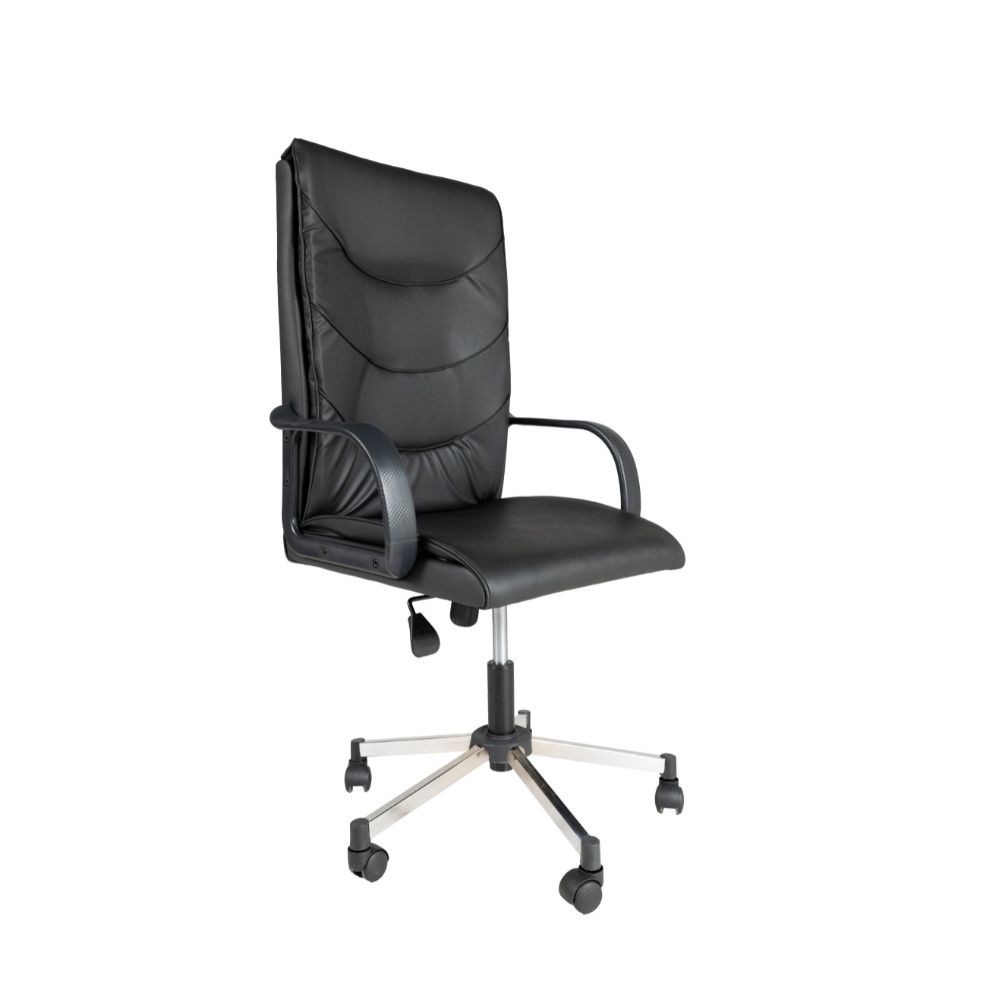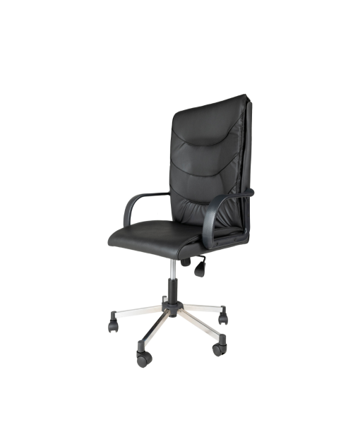 Poltrona per ufficio comoda e resistente. Grazie alla sua spugna alta densità garantisce un comfort elevato anche stanno seduti per lunghi periodi. La base cromata e il rivestimento in pelle nero la rende facile da abbinare al tuo ufficio, studio o cameretta. Il meccanismo alzo-basso e oscillante garantisce una giusta postura.