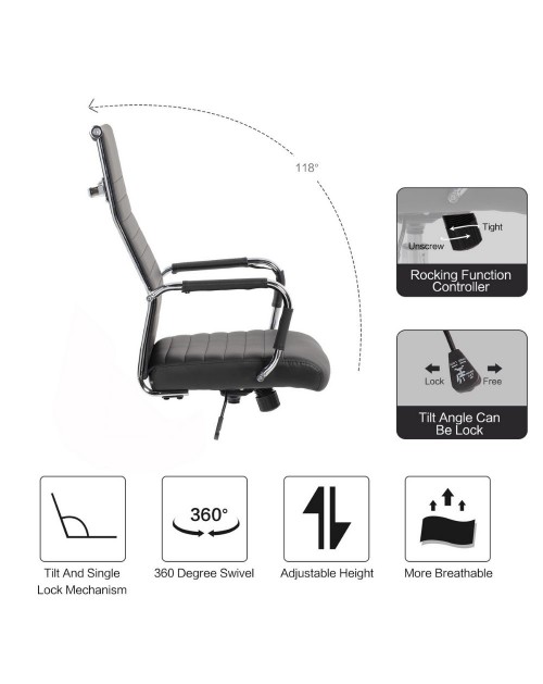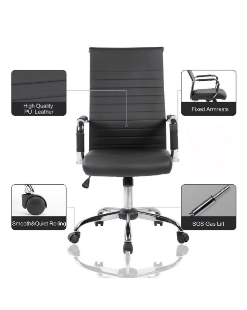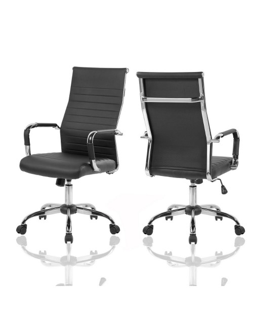 Poltrona ufficio con base cromata ecopelle nera Folkvan