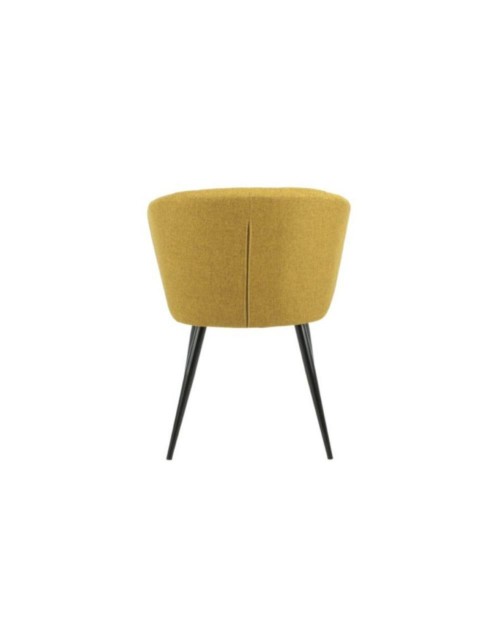 La sedia Krid in elegante tessuto giallo e piedi neri si caratterizza per lo schienale avvolgente, dettagli a fasce sullo schienale e raffinati piedi neri.