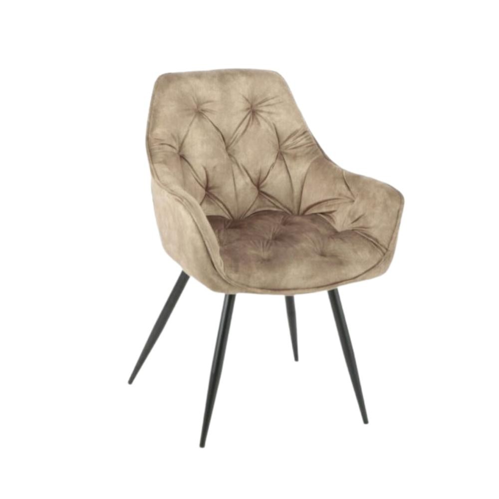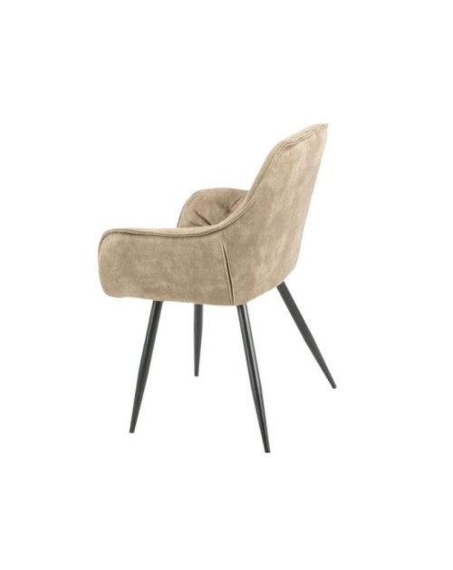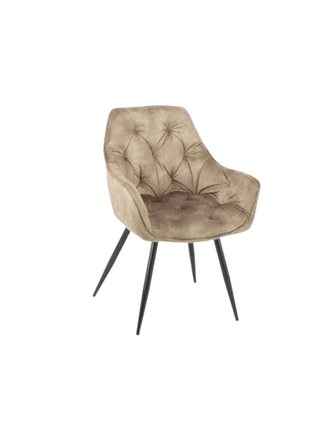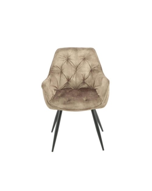La sedia in velluto marrone e piedi in metallo nero Senna, si caratterizza per la seduta avvolgente. I braccioli garantiscono un ottimo supporto per le braccia. Molto particolari le cuciture geometriche dello schienale.