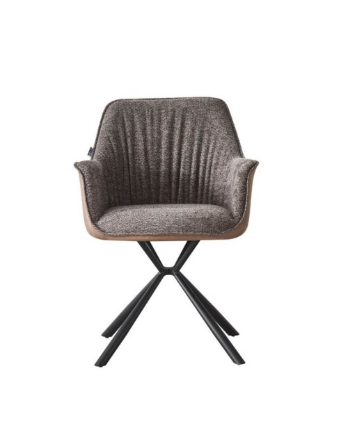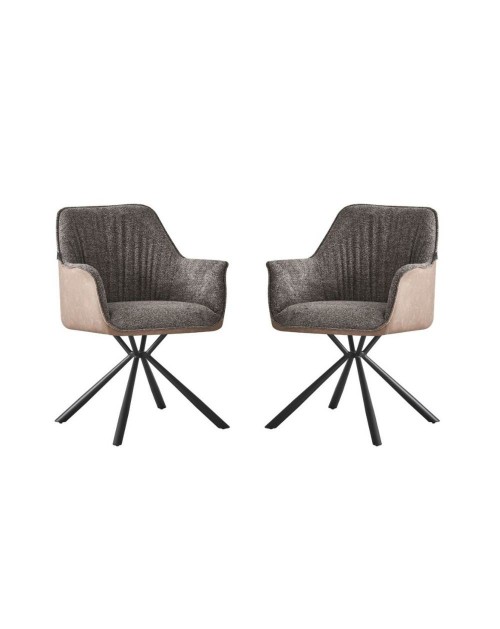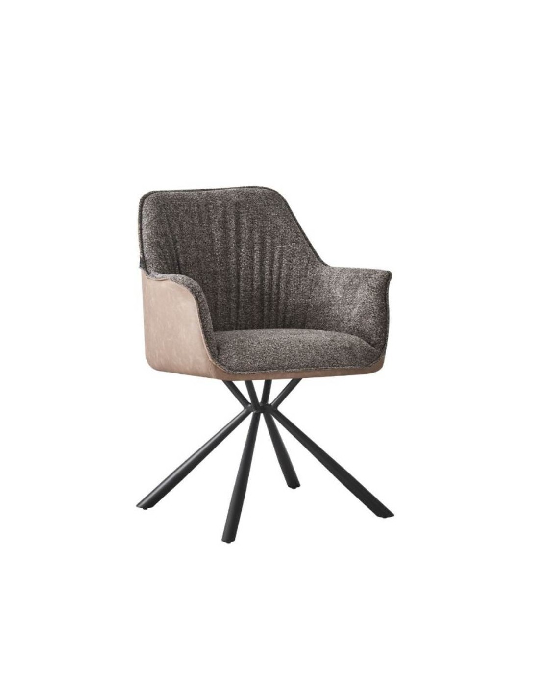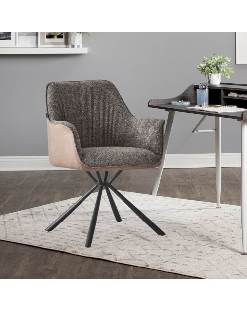 La sedia con braccioli Aseat in tessuto grigio, è dotata di rivestimento in ecopelle tortora sul retro e di una elegante base a 4 razze in metallo.