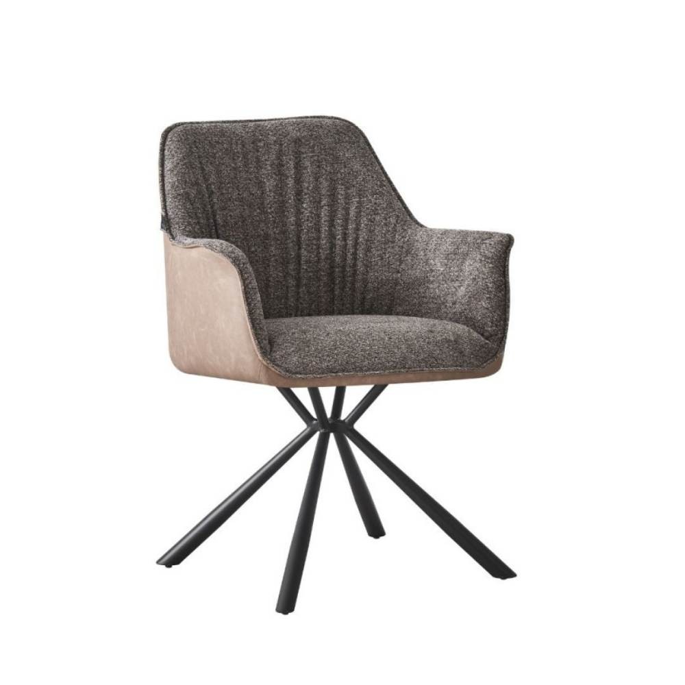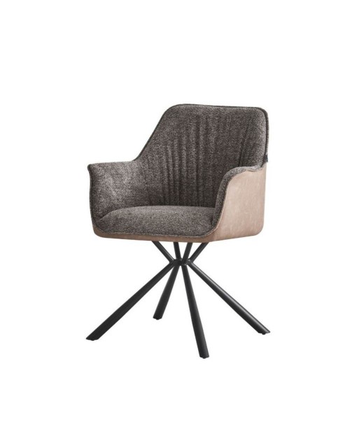 Sedia con braccioli tessuto grigio e retro ecopelle tortora Aseat