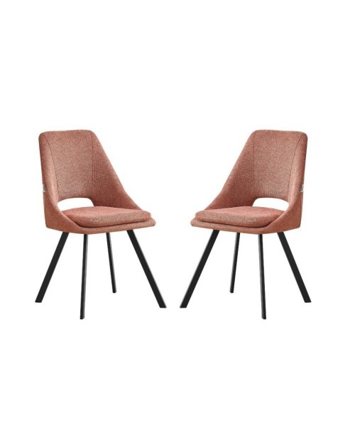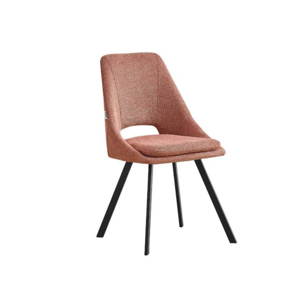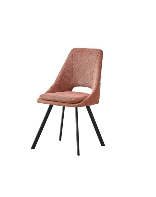 La sedia Blauss in tessuto salmone e gambe in metallo nero si caratterizza per il suo design moderno e per la sua comodità.