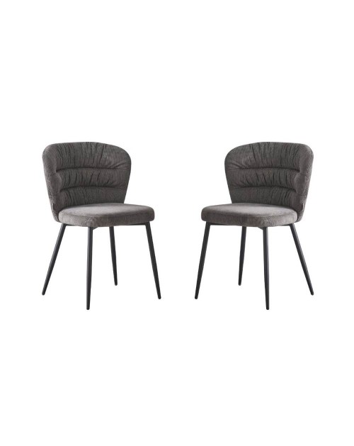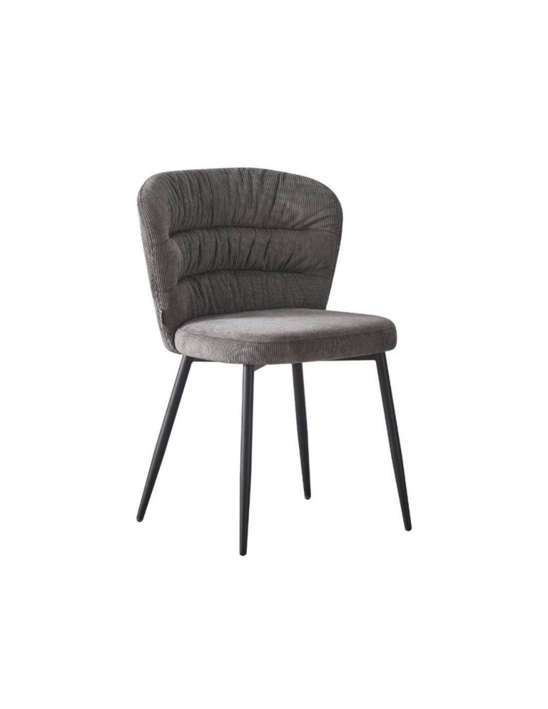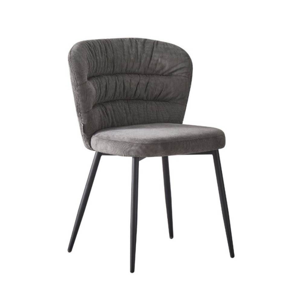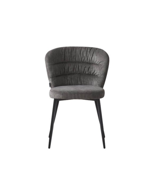 La sedia Klontar in tessuto grigio e gambe in metallo nero si caratterizza per lo schienale avvolgente e per la sua comodità.
