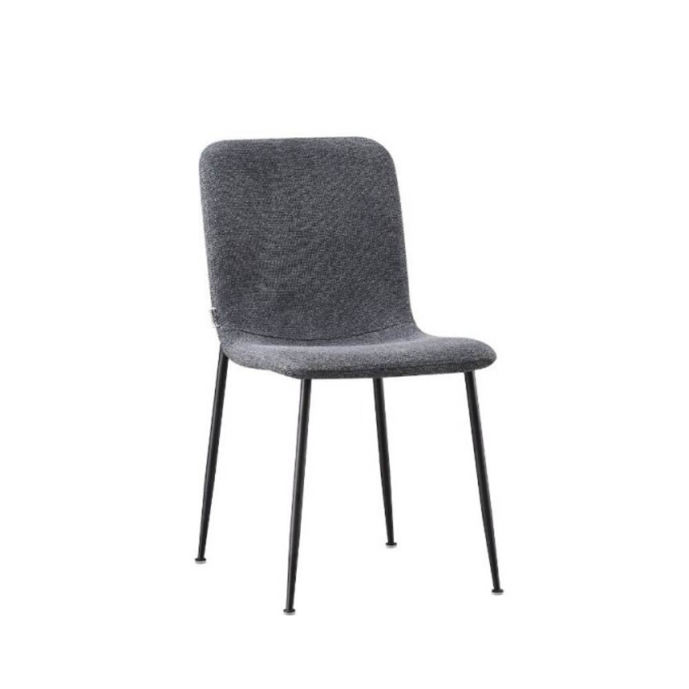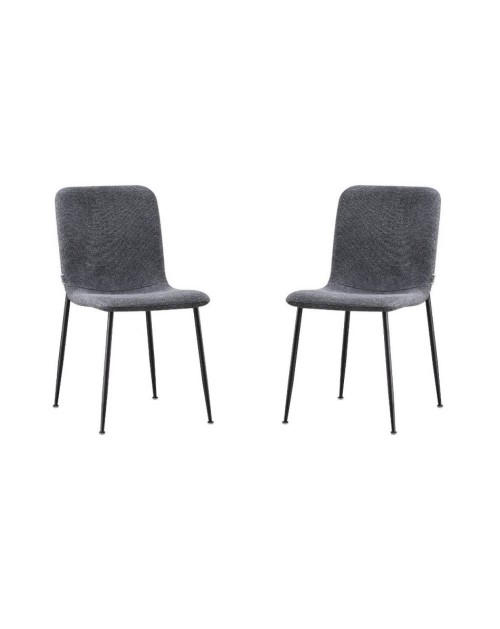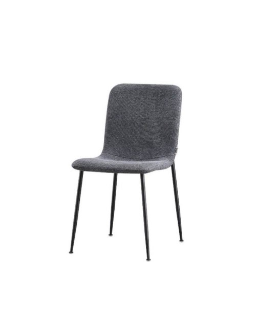 La sedia Patrug in tessuto grigio e gambe in metallo nero si caratterizza per la seduta ergonomica e accogliente.