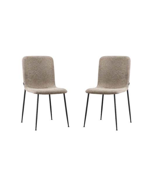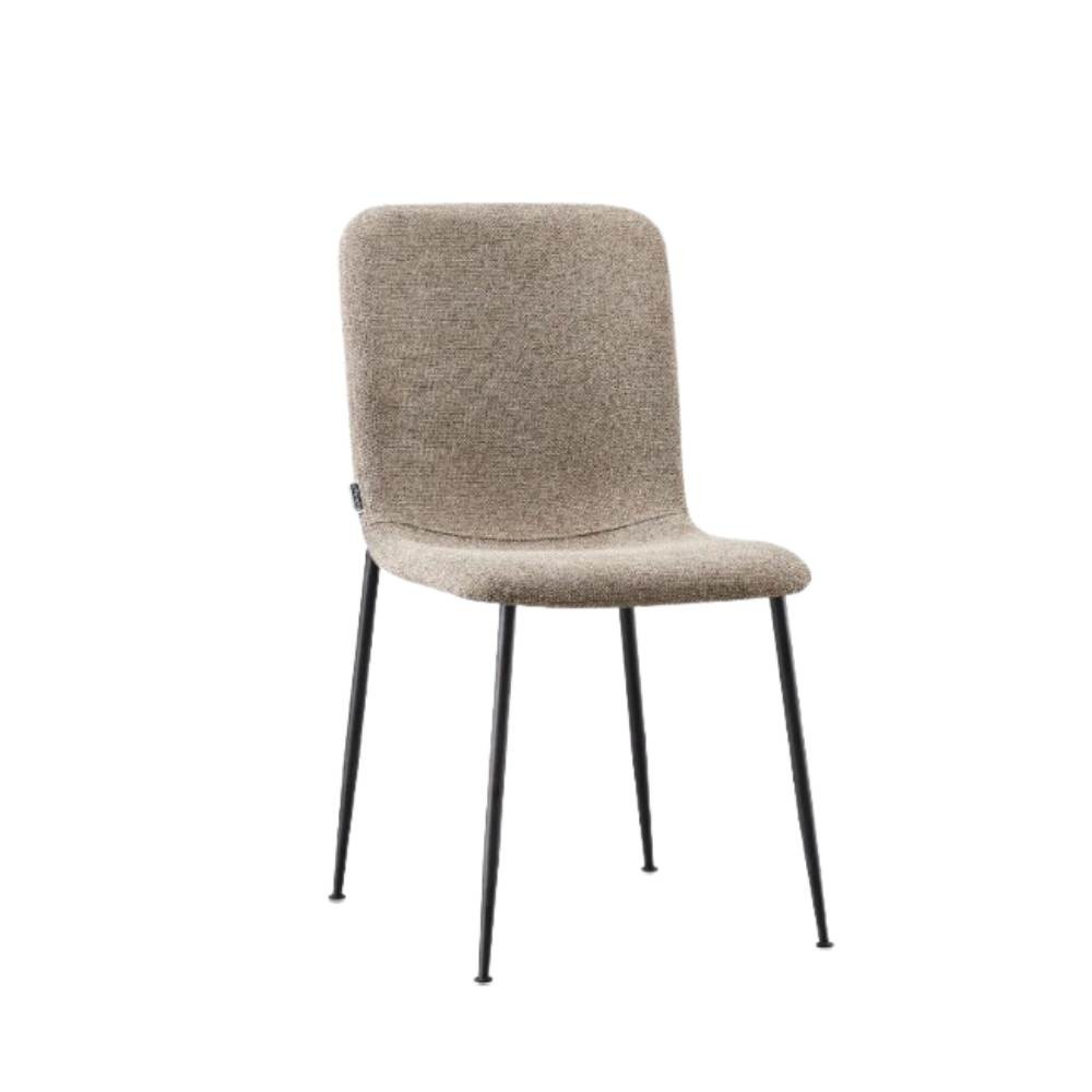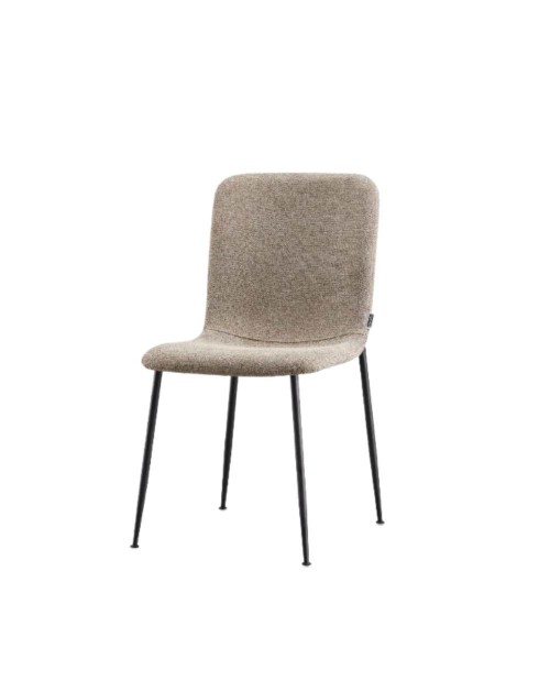 La sedia Patrug in tessuto beige e gambe in metallo nero si caratterizza per la seduta ergonomica e accogliente.